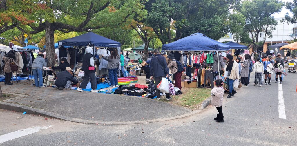 ・3日(月)尼崎市立西武庫公園(通称、交通公園)利用者様とフリーマーケットに行きました。